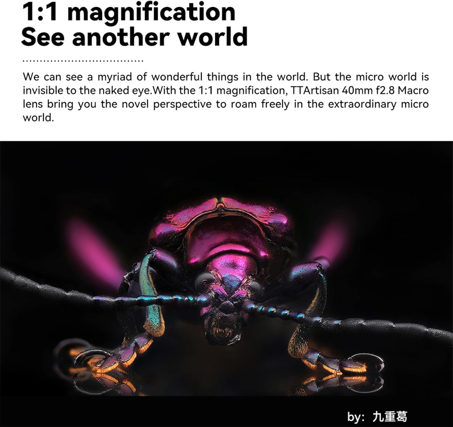 Whether you’re capturing the intricate details of a flower or shooting a portrait with stunning background bokeh, the TTArtisan 40mm f/2.8 Macro Lens is your go-to choice for creative and professional-quality images. Enhance your E-Mount camera’s potential and explore new photographic possibilities with this exceptional lens.
